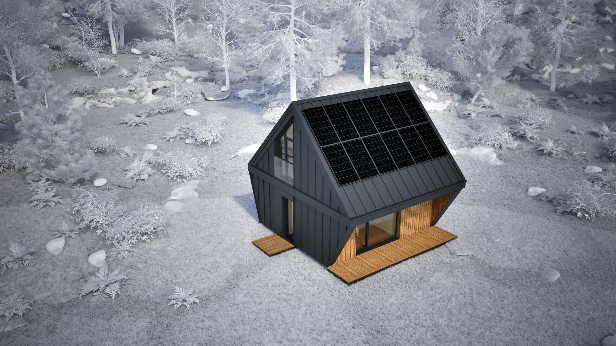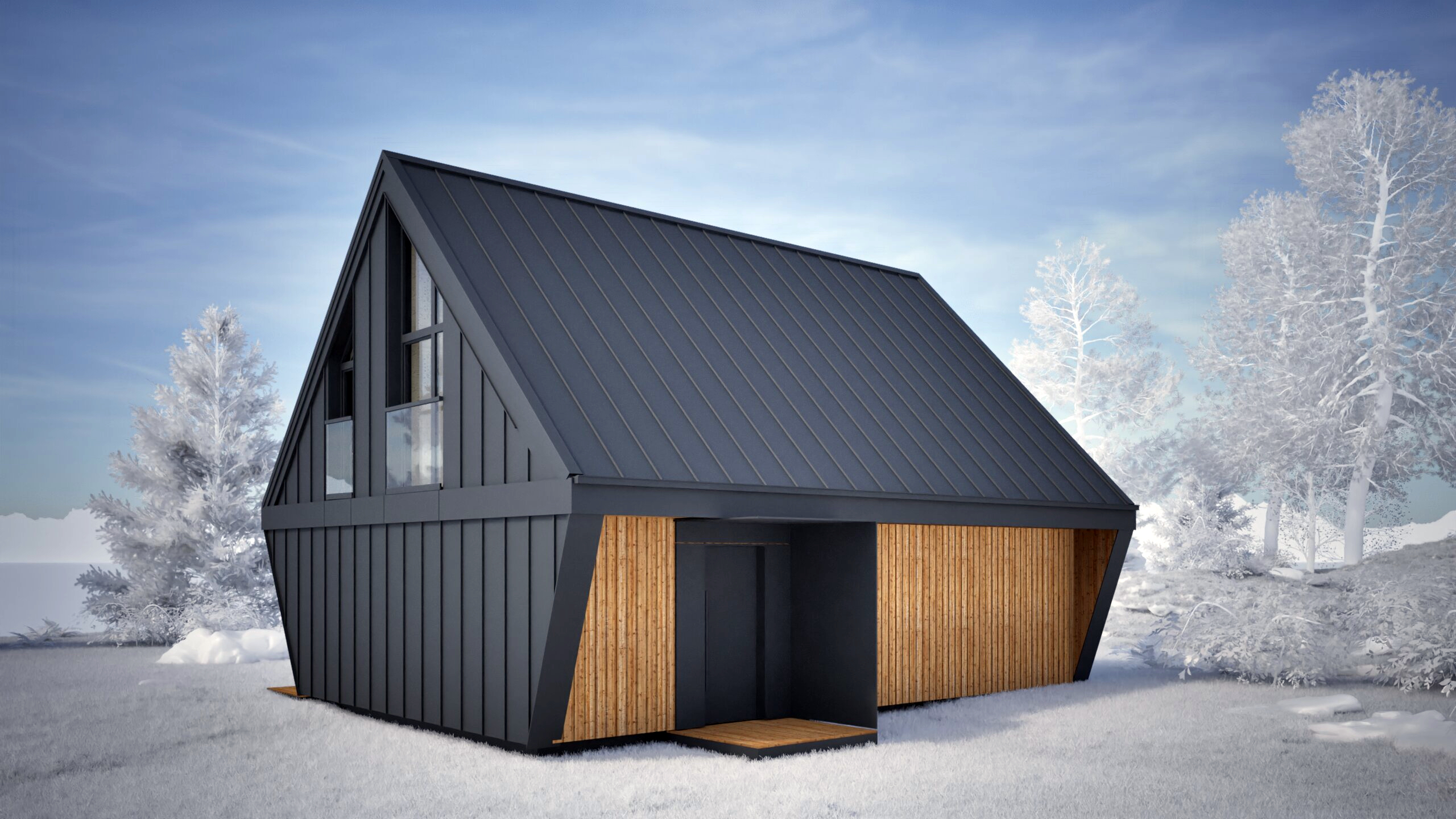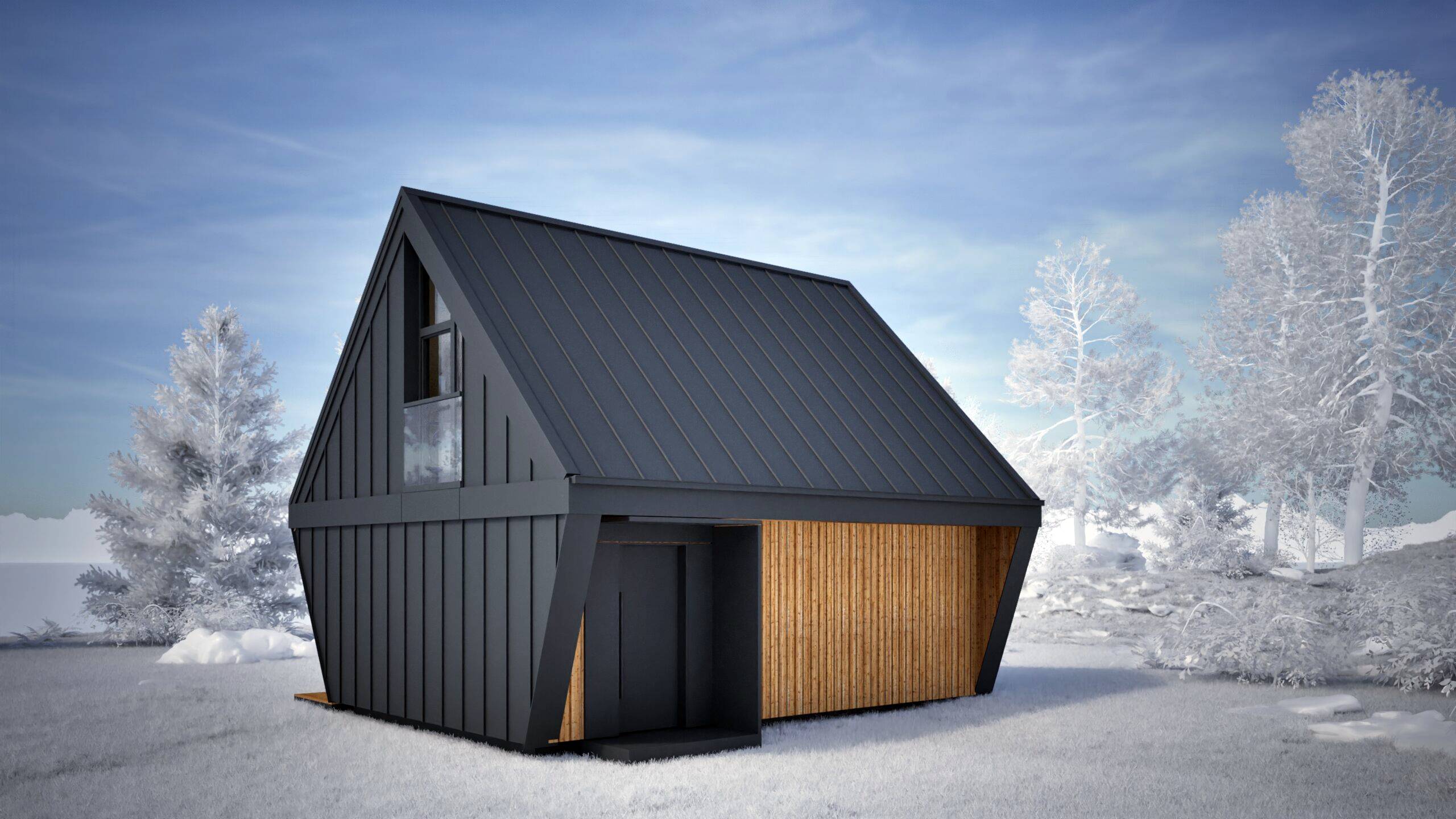 Najmniejszy z elementów bazowych – funkcjonalna przestrzeń dla singla, pary lub jako domek wakacyjny. Zawiera salon z kuchnią, sypialnię, mały pokój i dwie łazienki. Gotowy do zamieszkania od pierwszego dnia.