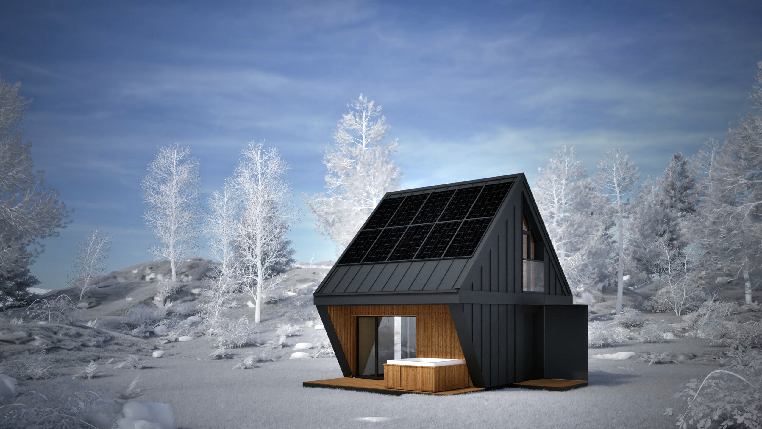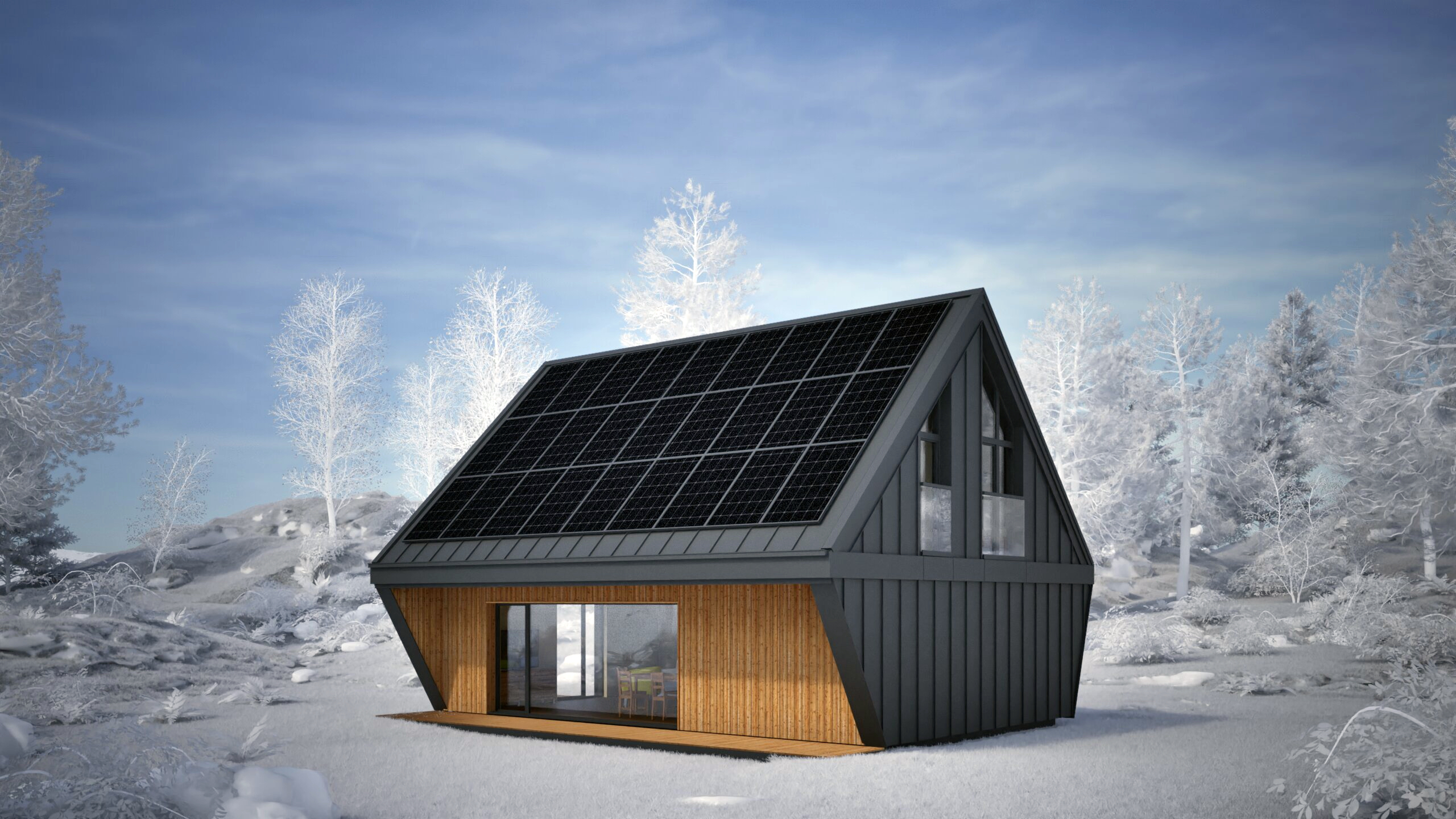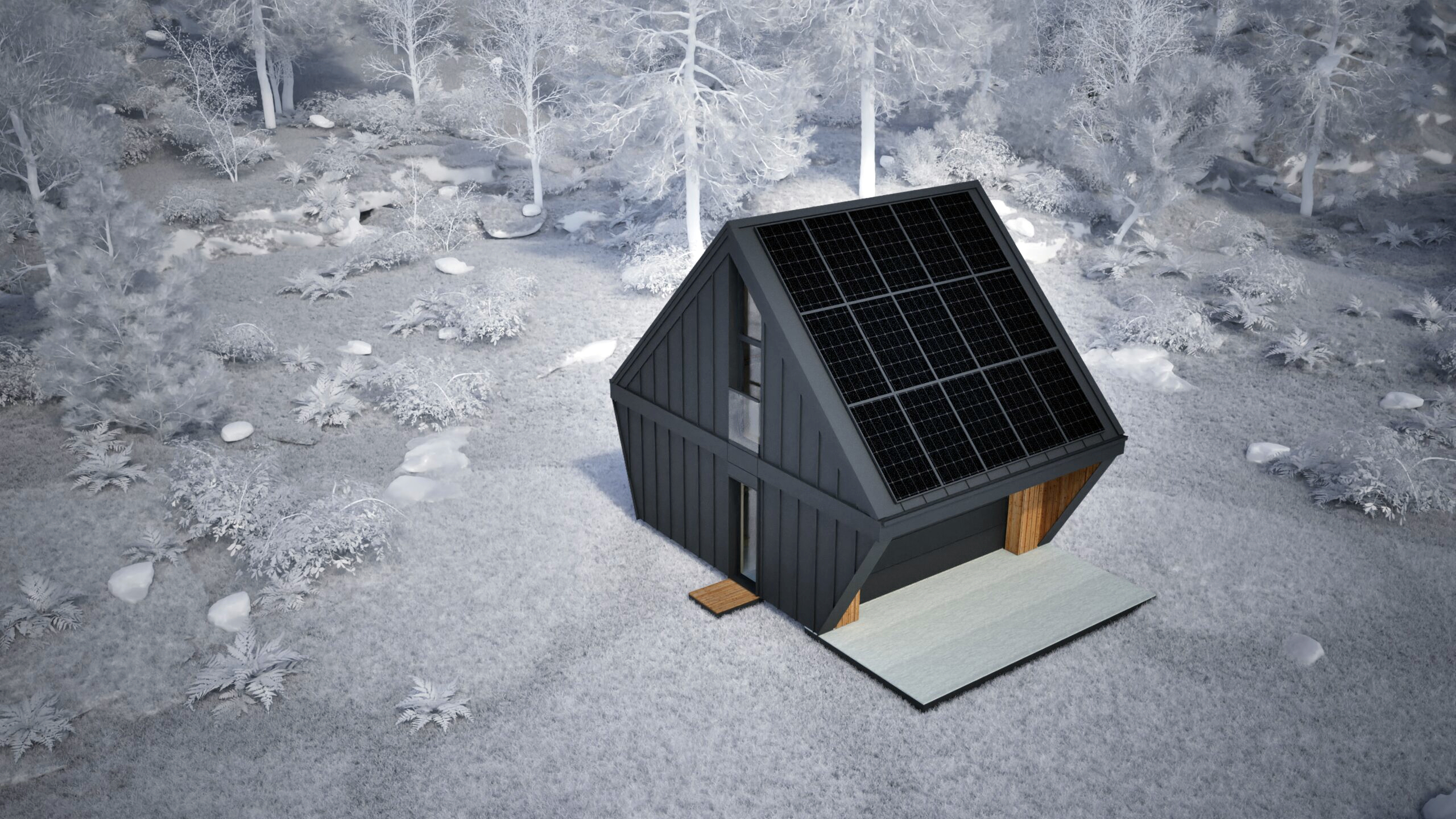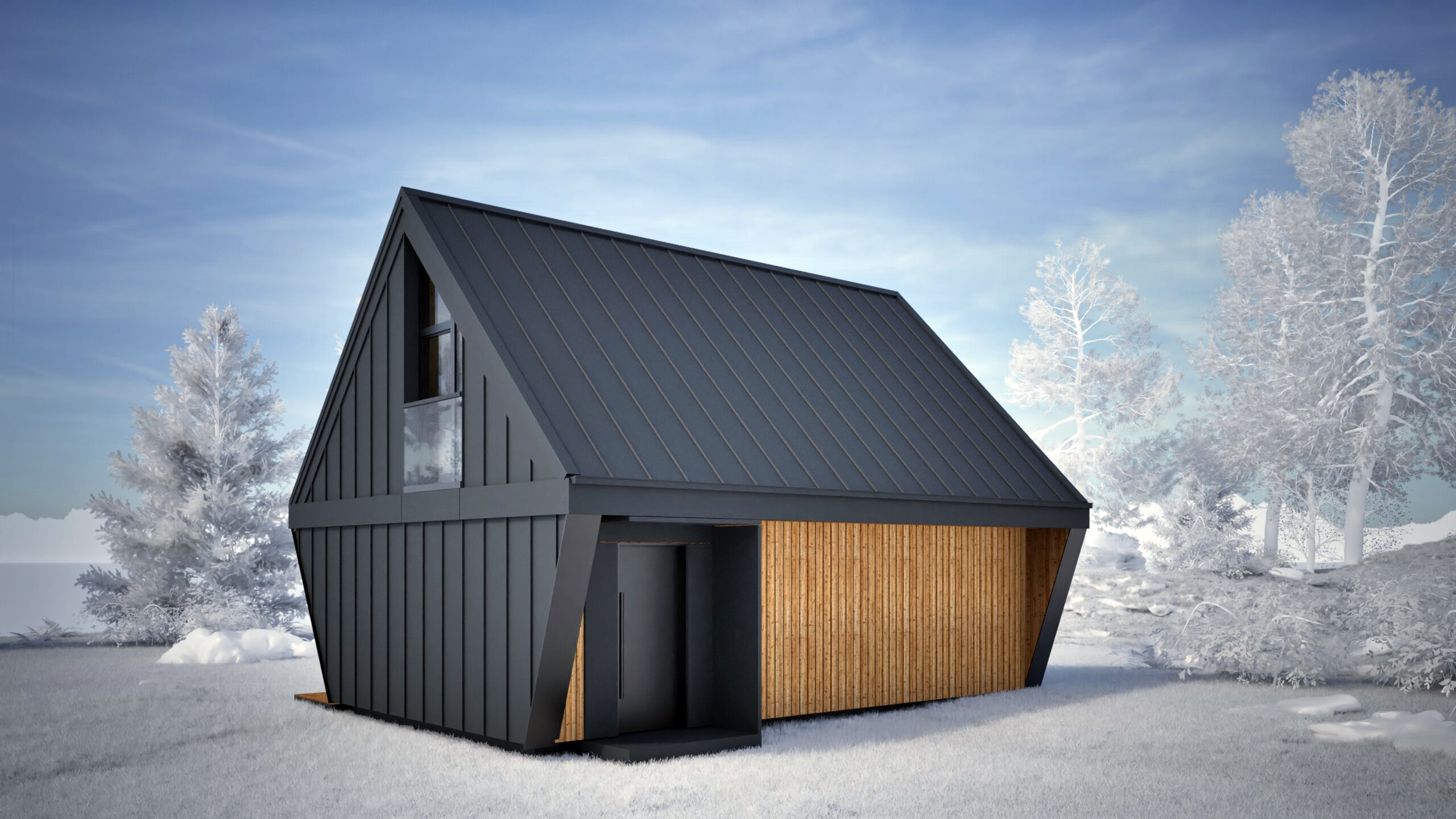 Najmniejszy z elementów bazowych – funkcjonalna przestrzeń dla singla, pary lub jako domek wakacyjny. Zawiera salon z kuchnią, sypialnię, mały pokój i dwie łazienki. Gotowy do zamieszkania od pierwszego dnia.